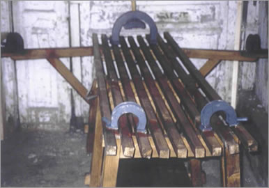 Innenausstattung, des Wirtshauses "Ratskeller" in Rostock. Folterbank