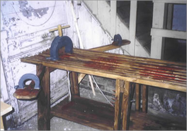 Innenausstattung, des Wirtshauses "Ratskeller" in Rostock. Folterbank (Ausschnitt)